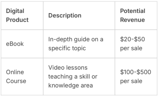 Creating digital products is a good way to earn. You can make eBooks, courses, or software. Think about what you know well and turn it into a product.